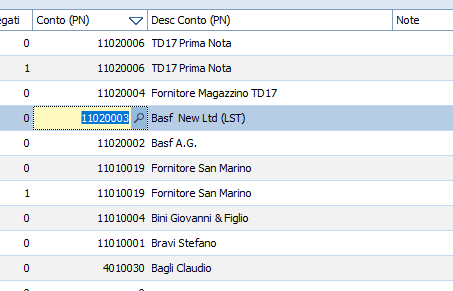 Una volta importata l'integrazione/autofattura nella consolle delle fatture attive, l'utente deve modificare manualmente il codice fornitore nella colonna Conto (PN), inserendo il conto del fornitore.