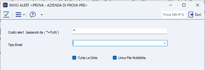 Indicare i codici alert oggetto della schedulazione *: Tutti |